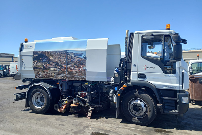 Barredora autopropulsada de aspiración con capacidad de 2 m3.